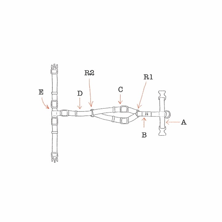 The B segment is the non-adjustable one and it's going to rest along the spine from the neck's base to the leash's ring.