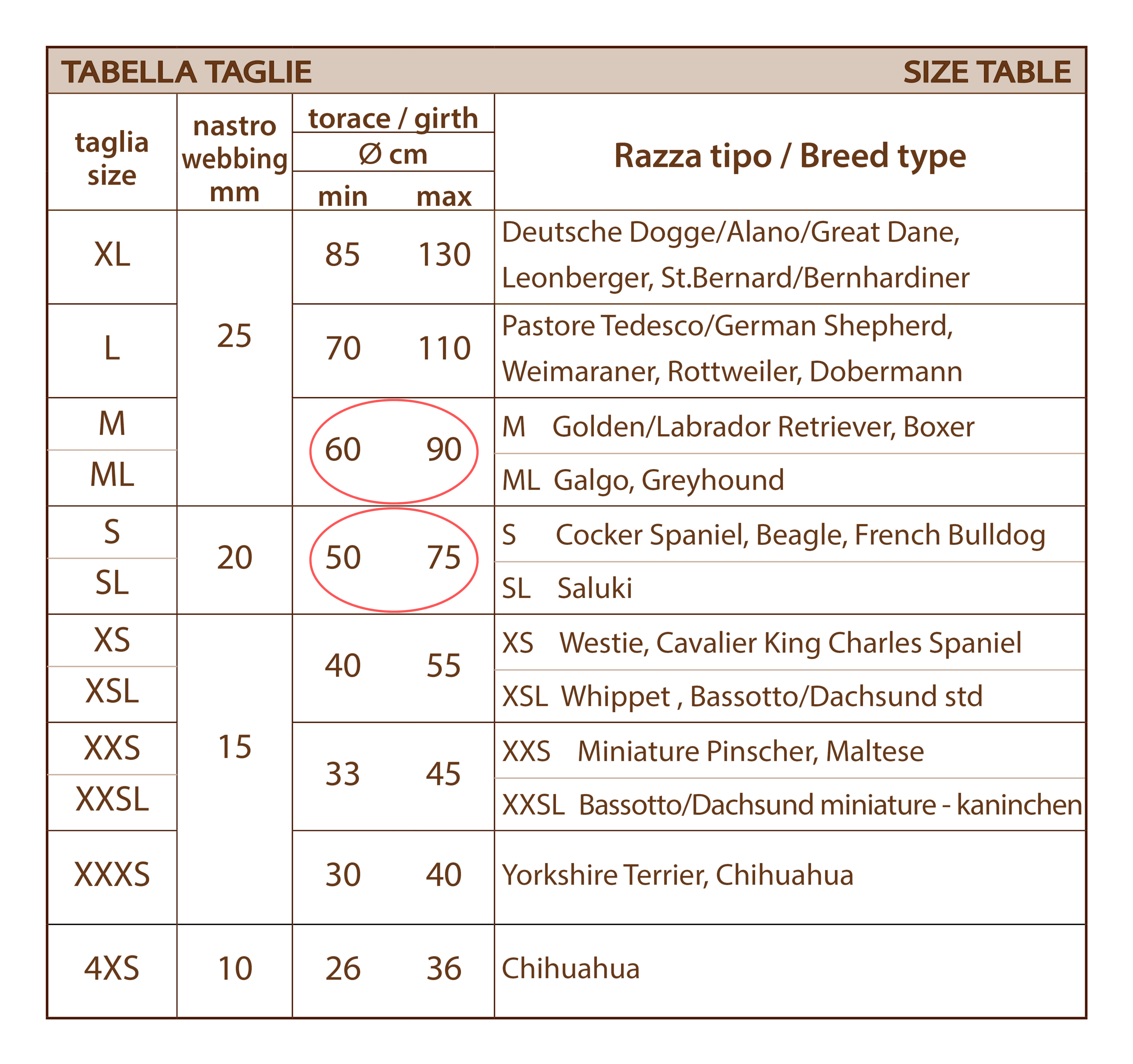 The Enter Key returns the sizes included in that range, for example S and M with the corresponding measures of B and D and a drawing showing how to take them on your dog. Then after measuring you can choose on your own.
